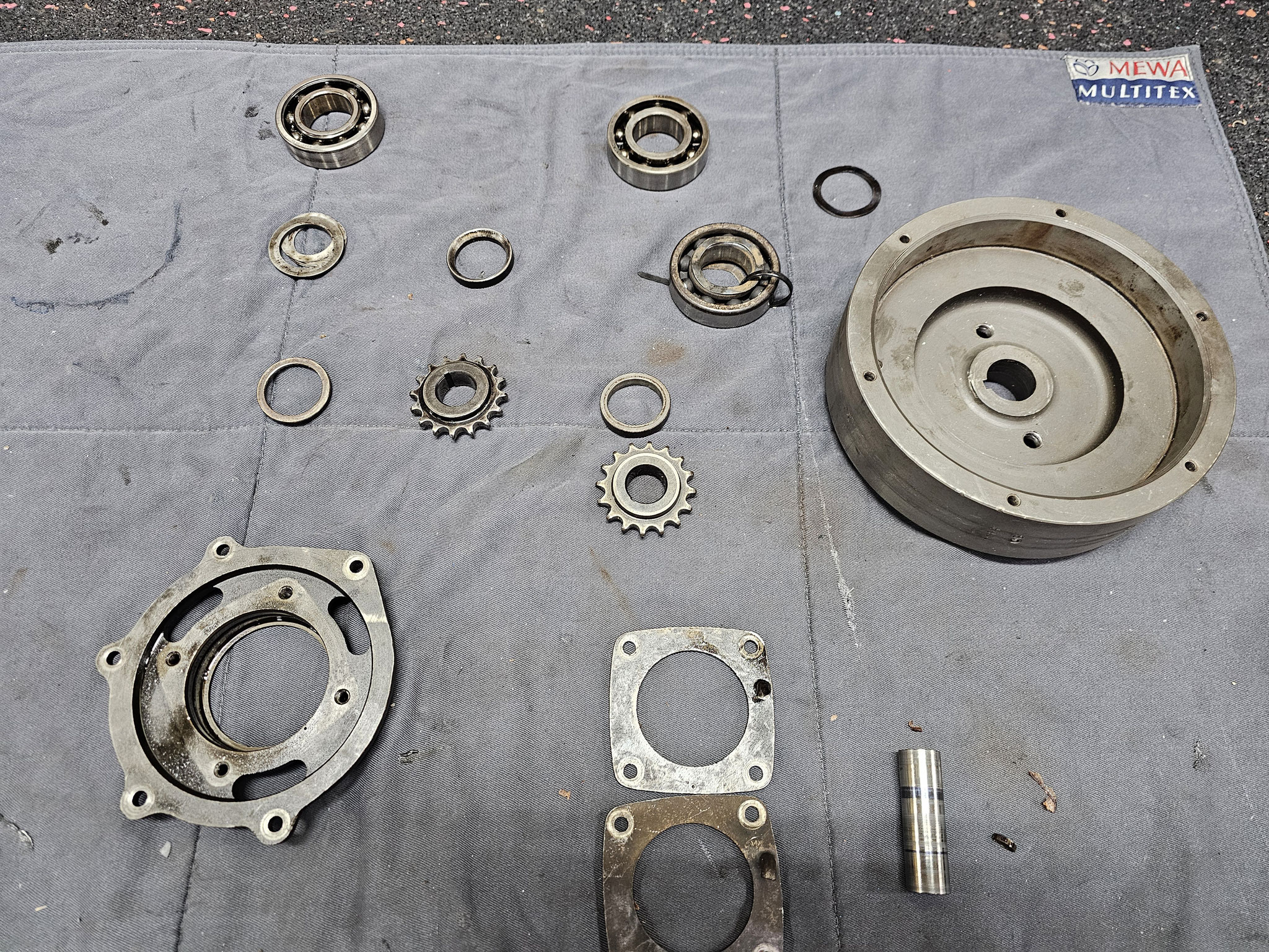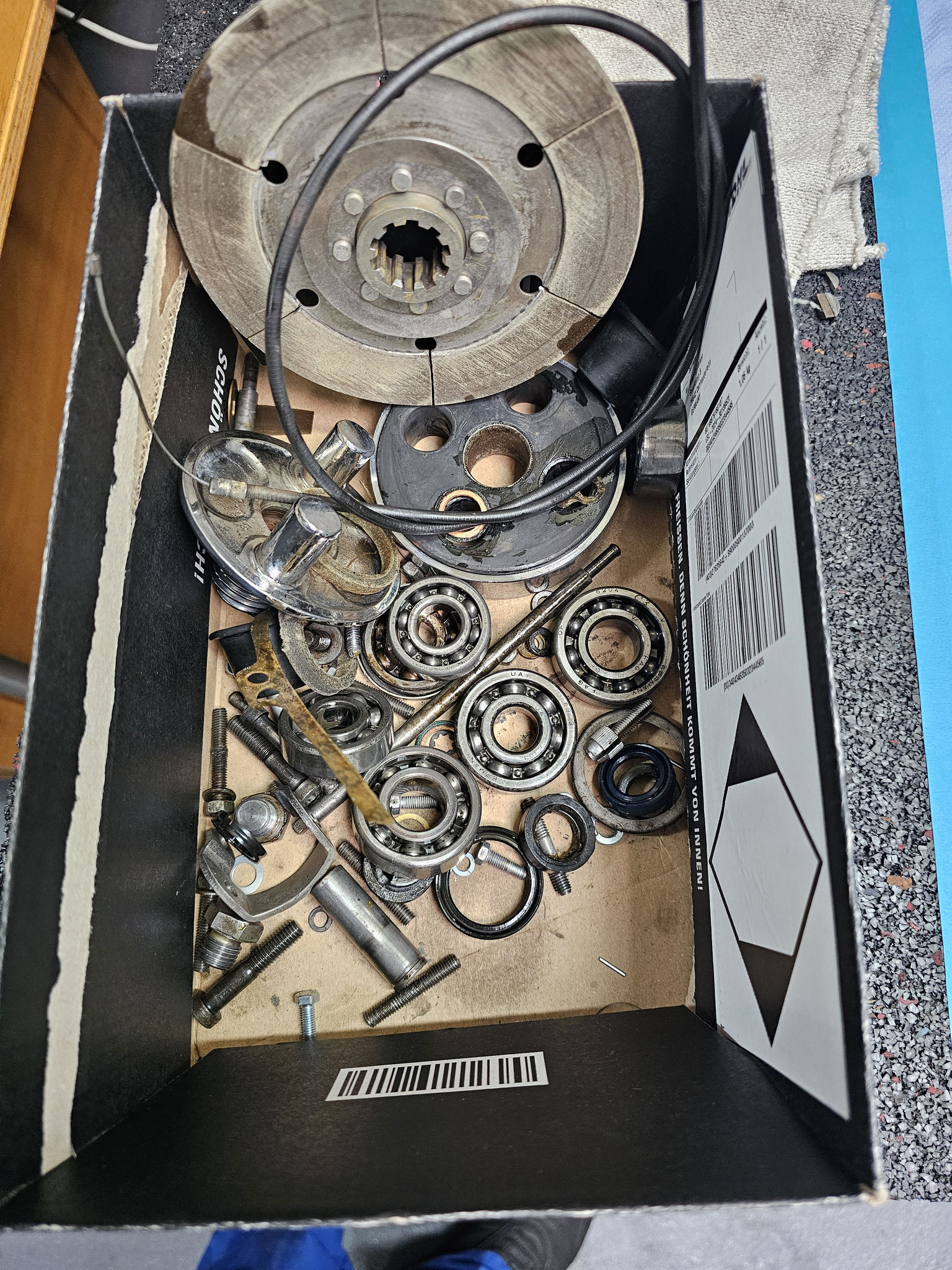 Ersatzteile: 3 Kisten mit Ersatzmotor und Getriebe